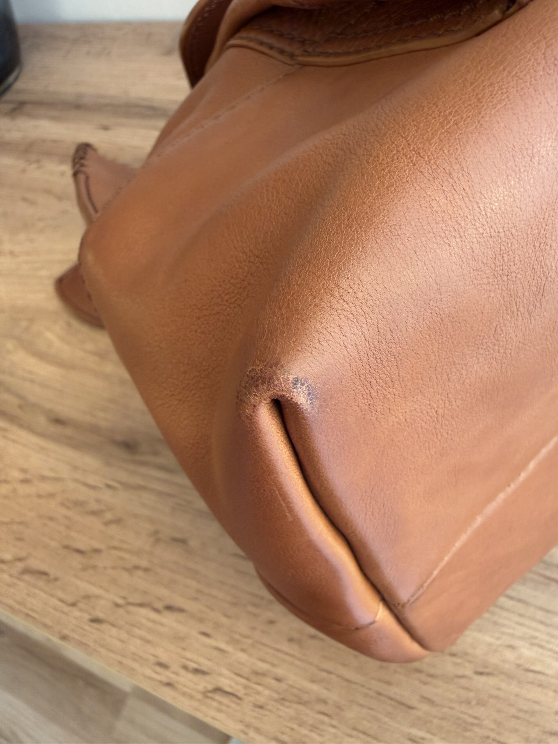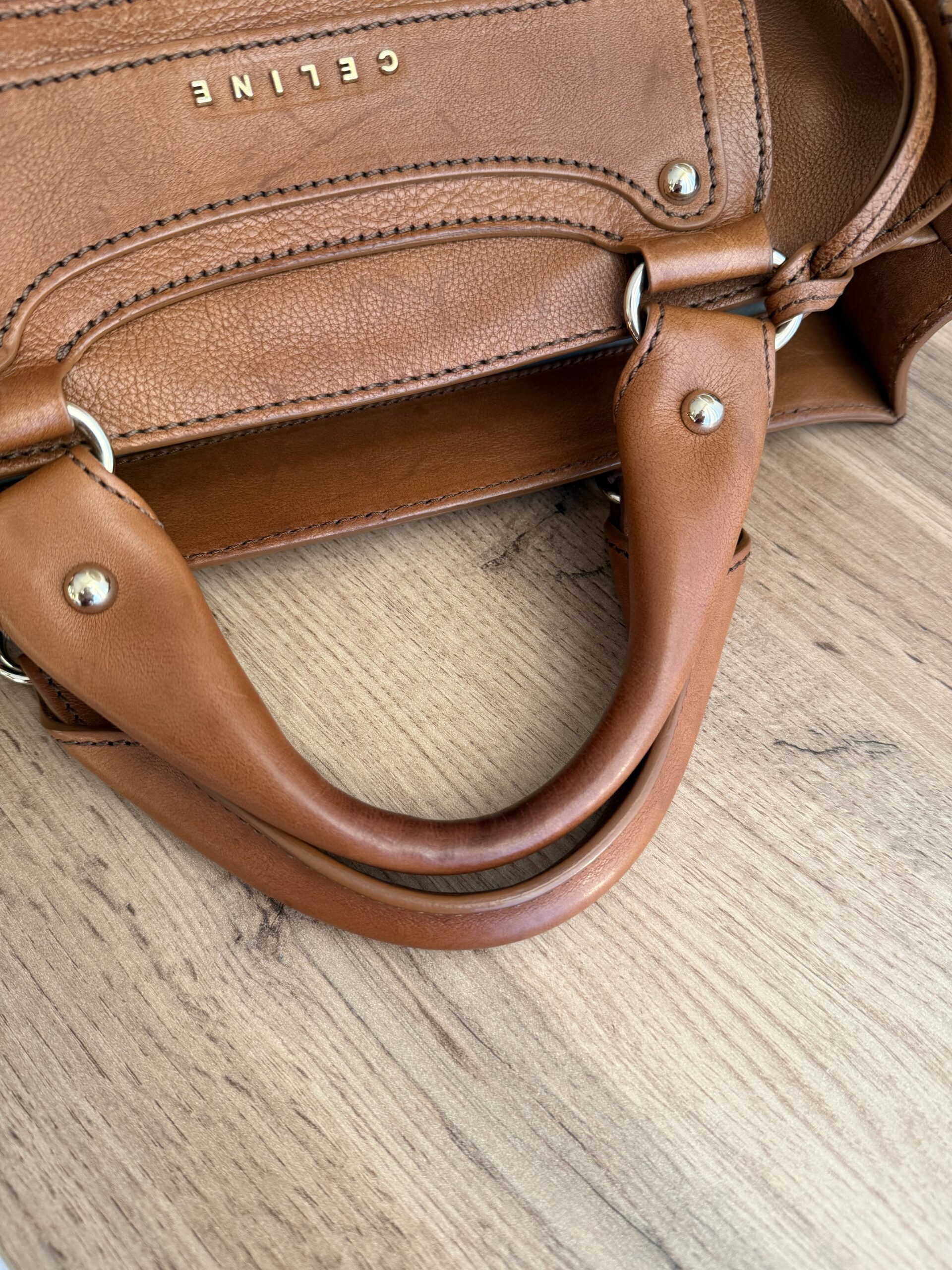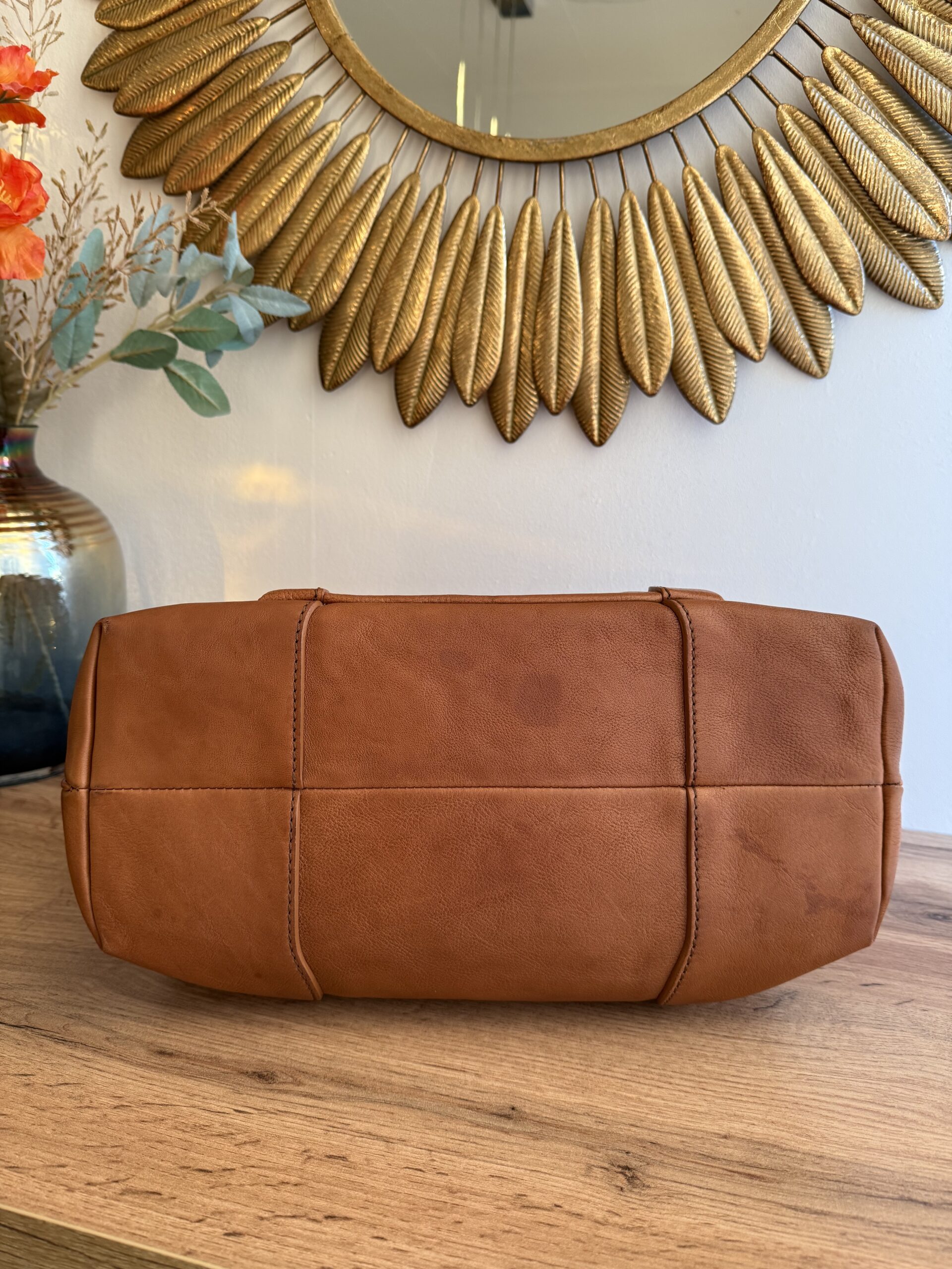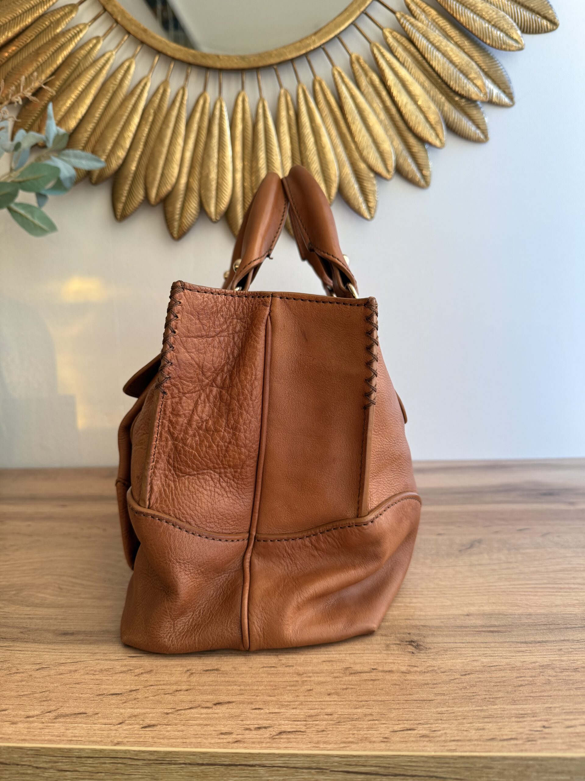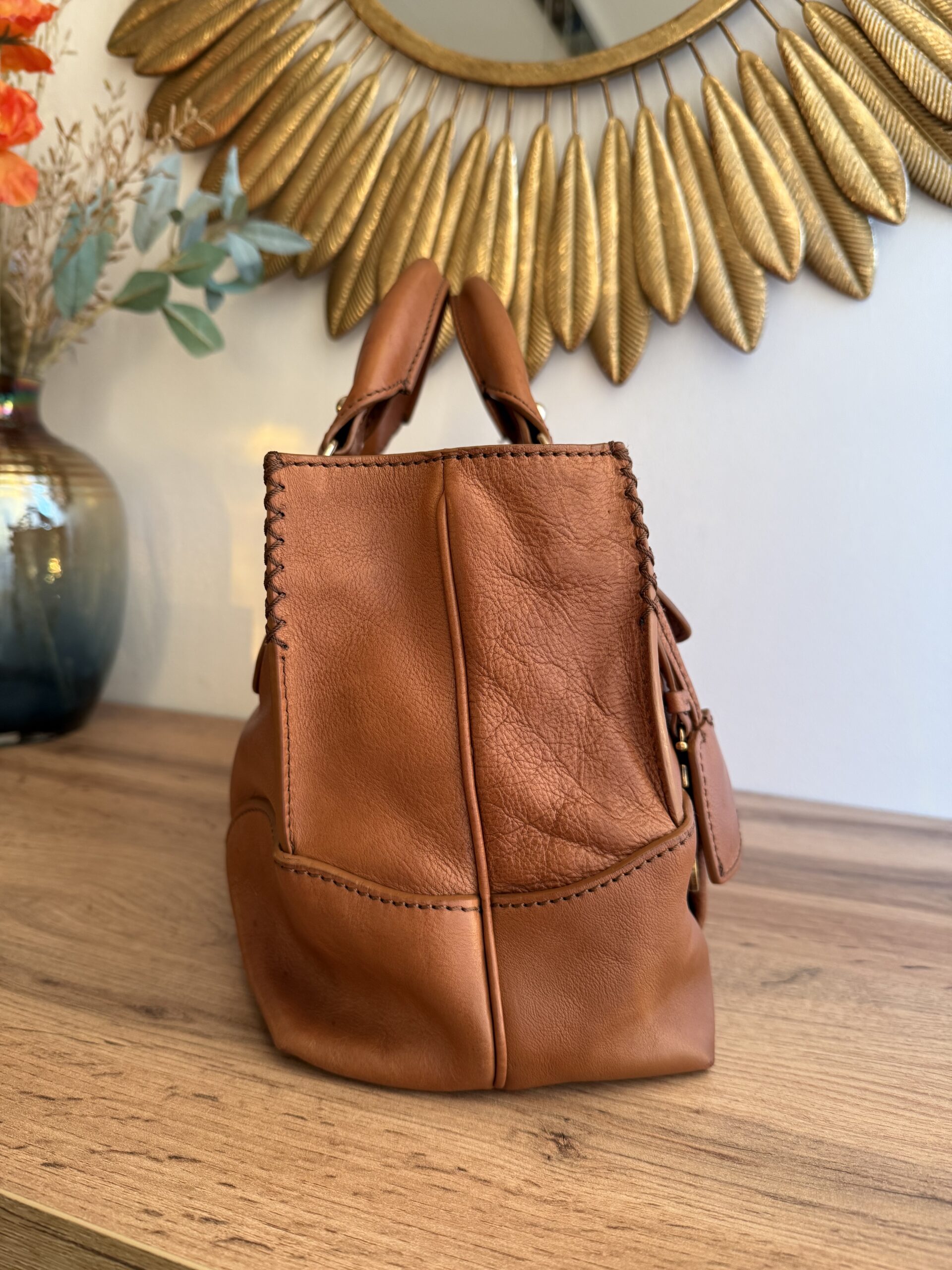 Vintage beauty, this bag is crafted from durable leather. Ideal for everyday use. Features two main compartment and one zipped pocket. This bag comes with the original horse and carriage charm.