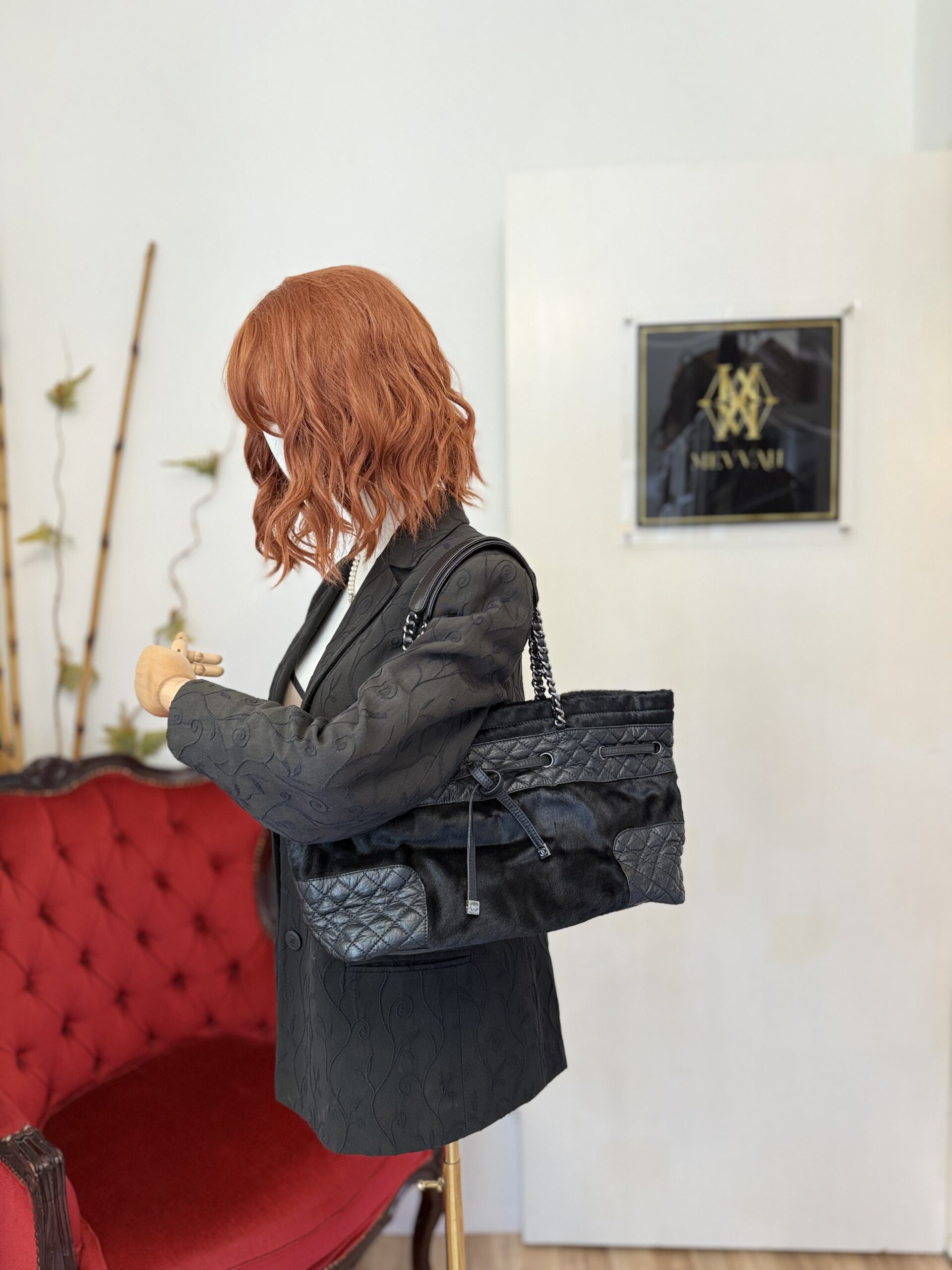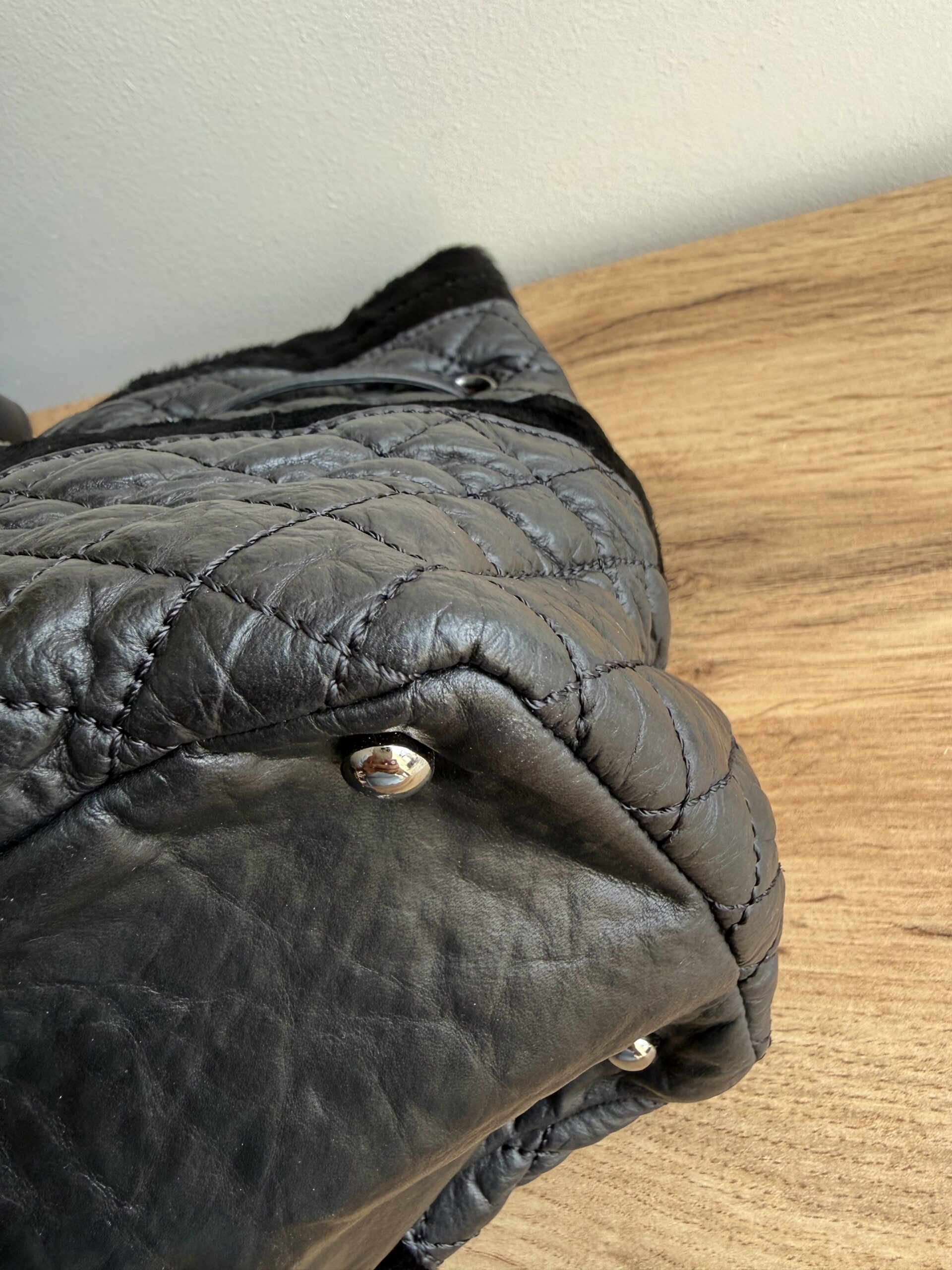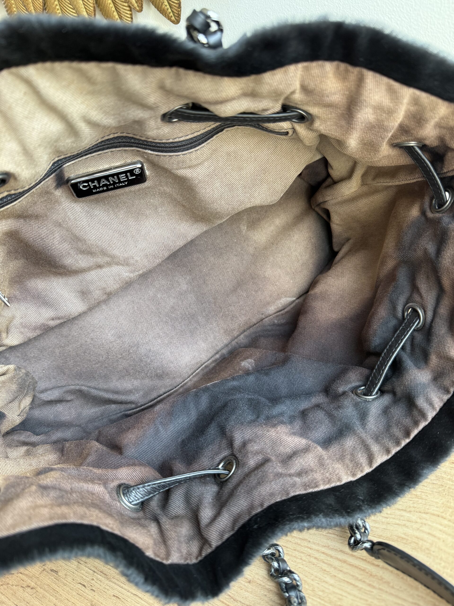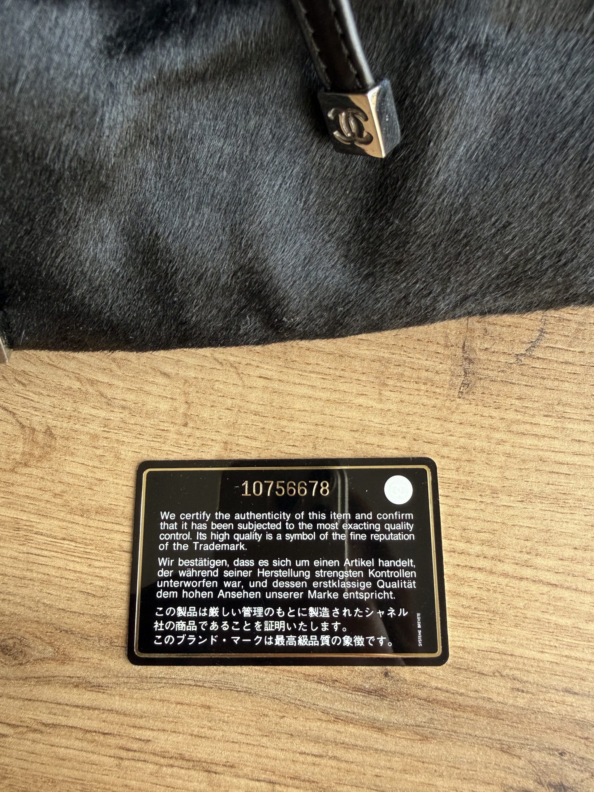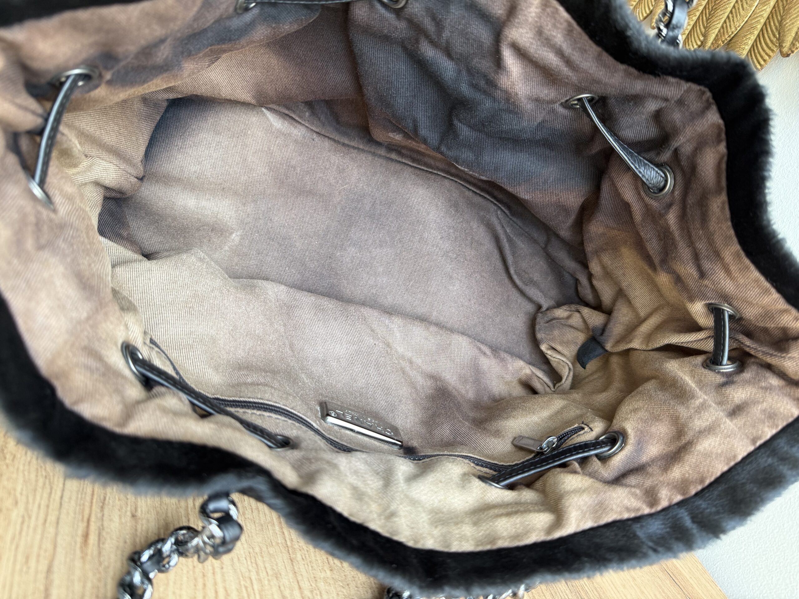 *Preloved* Crafted from a combination of pony-style calf hair and aged quilted leather with aged metal hardware, this bag features a drawstring closure with signature CC logo hardware at the and of the leather cord. This bag has one main compartment and one zipped inner pocket. This bag was manufactured between year 2005 and 2006. This bag comes with Chanel authenticity card and authenticated by Mevvah via Entrupy.
