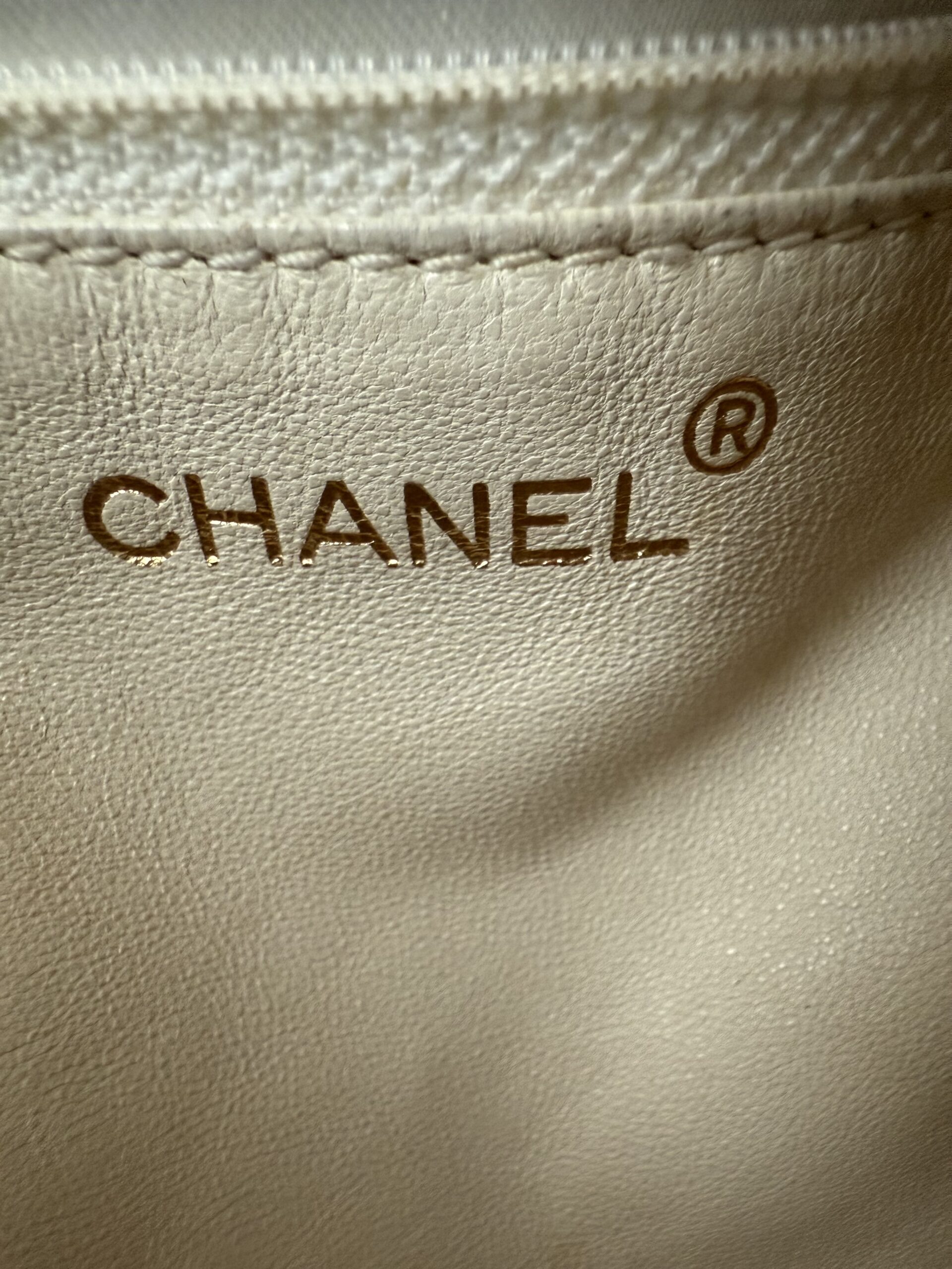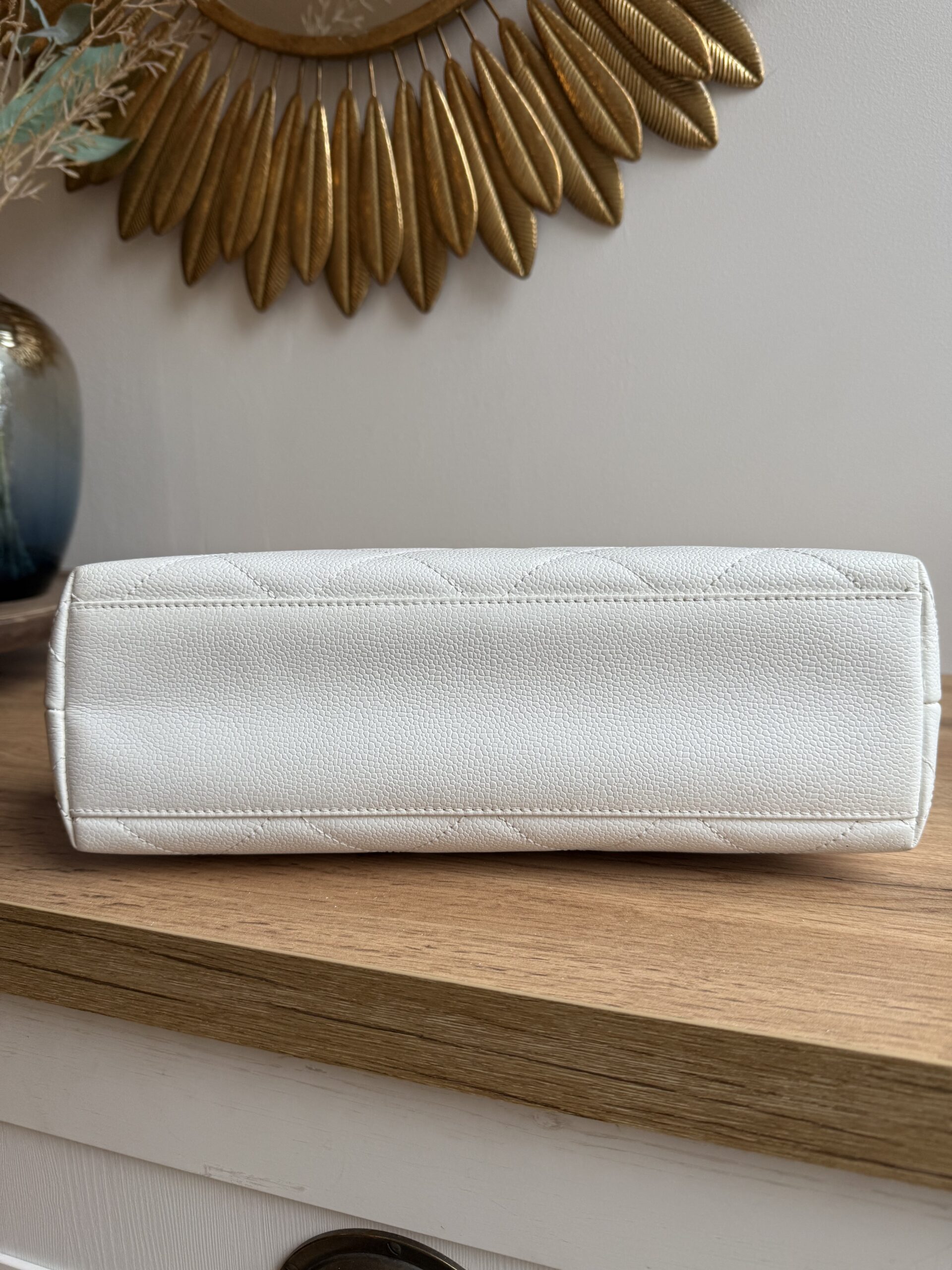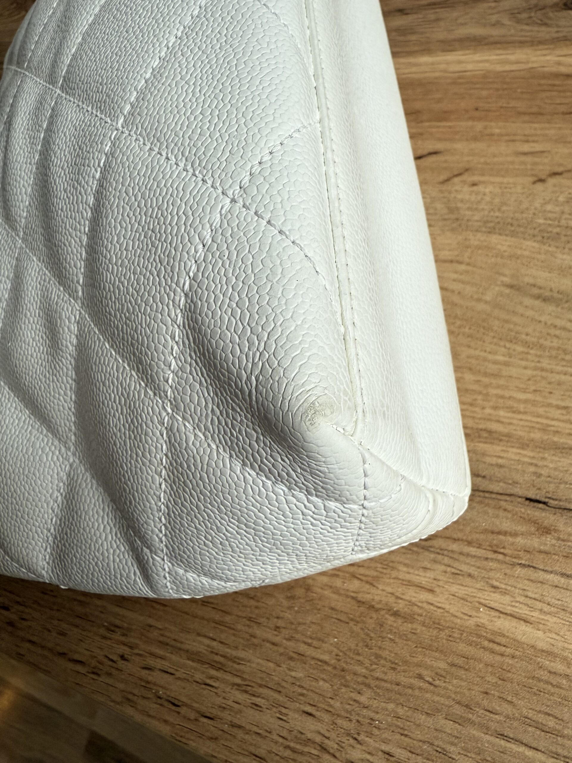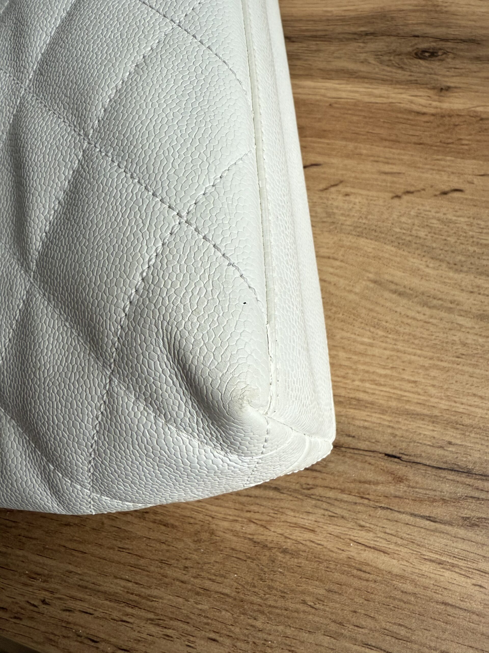 A sophisticated tote crafted from caviar leather with wooden handles. This piece is from the year 2001.